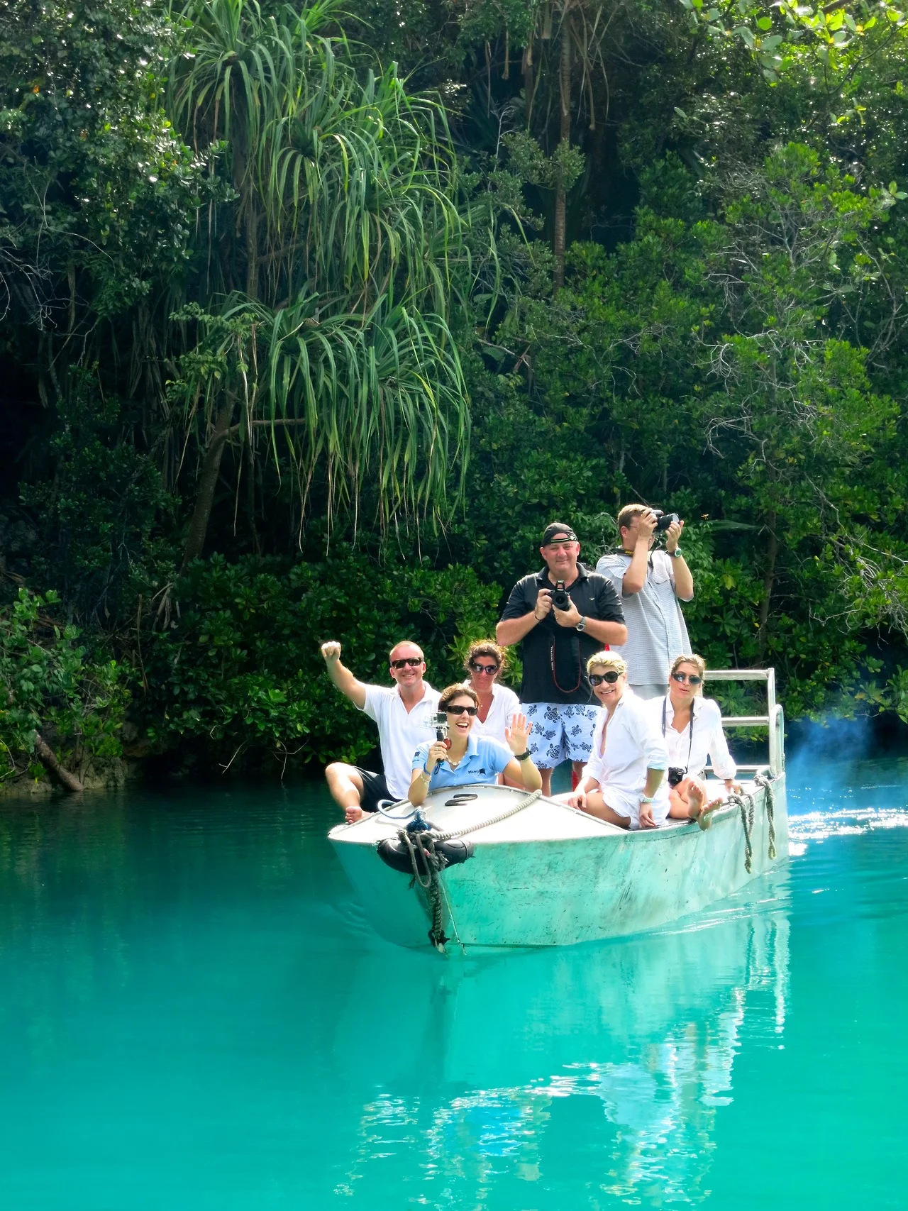 Besides the wonderful diving we took a couple small boats out and explored some of the turquoise waters of the archipelago. The water color was stunning and crystal clear. We saw many exotic birds and landed on a deserted beach for a swim in the waves.