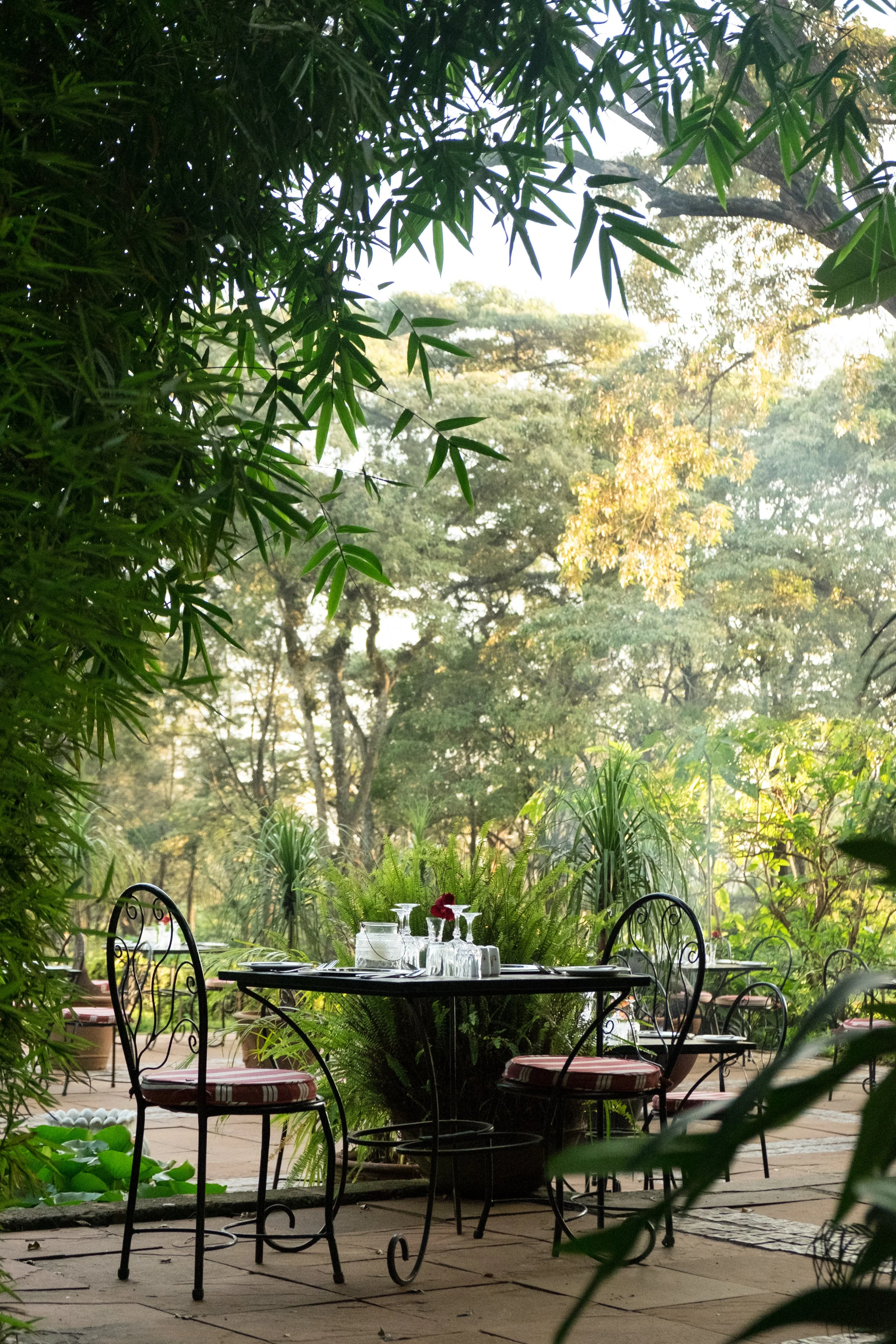 Besides the giraffes and warthogs which are the highlight of the property, the outside grounds of the manor are stunning with tons of lush greenery, a vintage greenhouse, sprawling gardens, towering trees, and sunny terraces. It is a magical atmosphere especially with the occasional giraffe strolling by.
